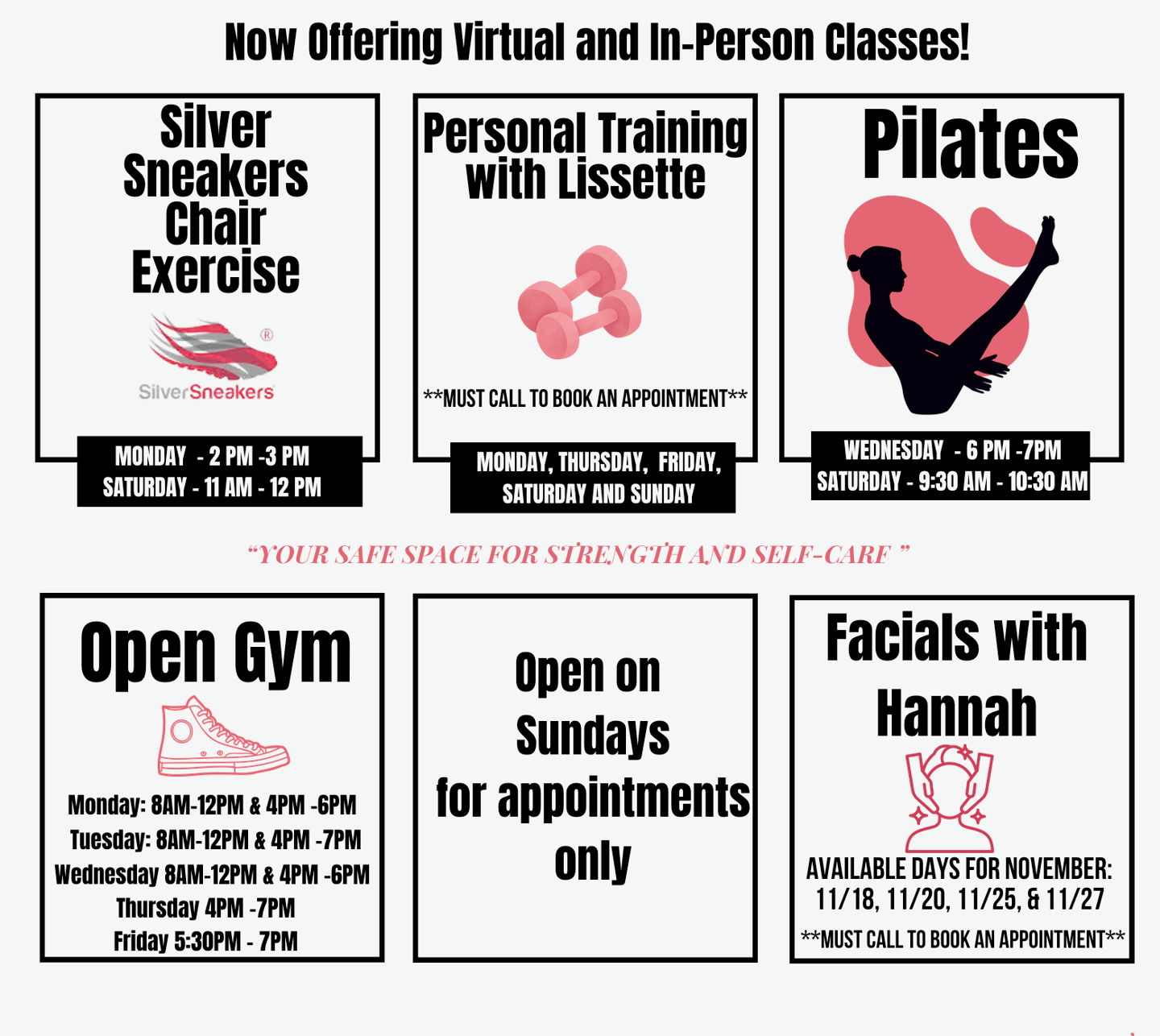 Schedules may change. Please follow up and download the Mindbody app for updates.